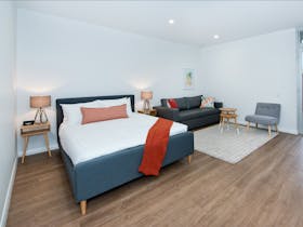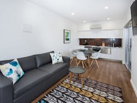 Smart TV’s. Enjoy the self contained kitchen with fridge, dishwasher, microwave, cooktop and coffee pod machine. Sit back and relax in the private alfresco courtyards with hooded bbq’s and reverse cycle air-conditioning for your comfort. Ask about special room rates for longer stays.